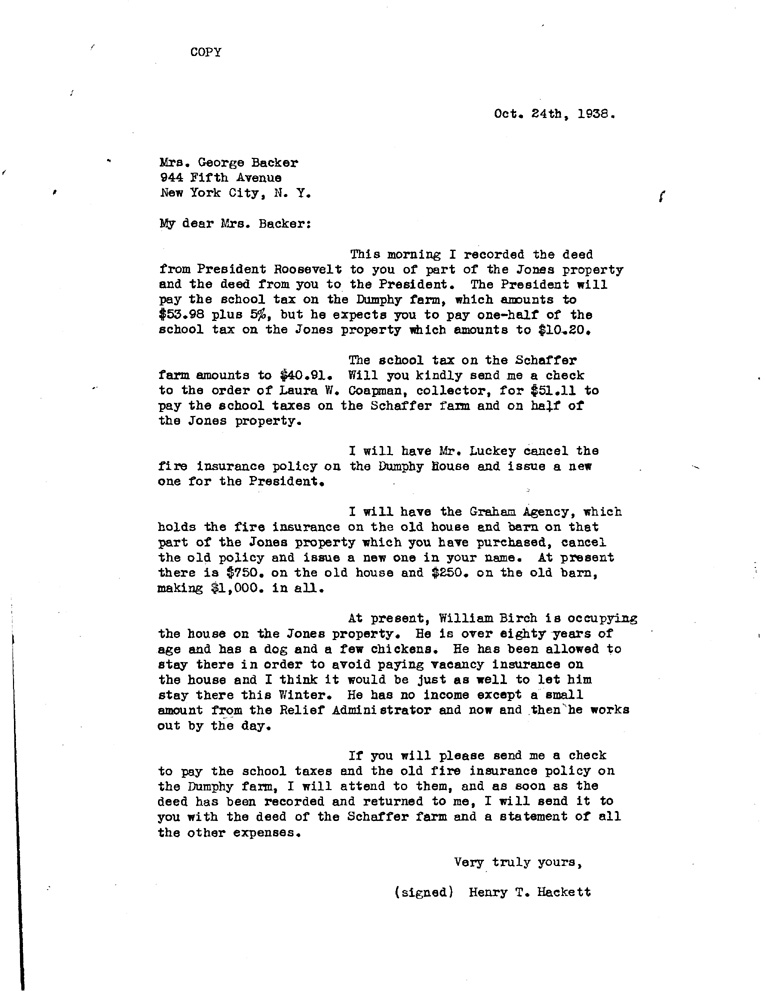 [a908cl01.jpg] - Letter to FDR from Hackett October 5, 1938