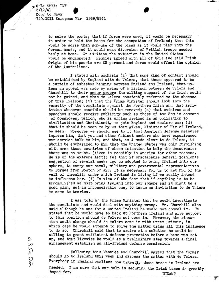 [a35a02.jpg] - Colonel Donovan - Secretary of Navy, March 11, 1941
