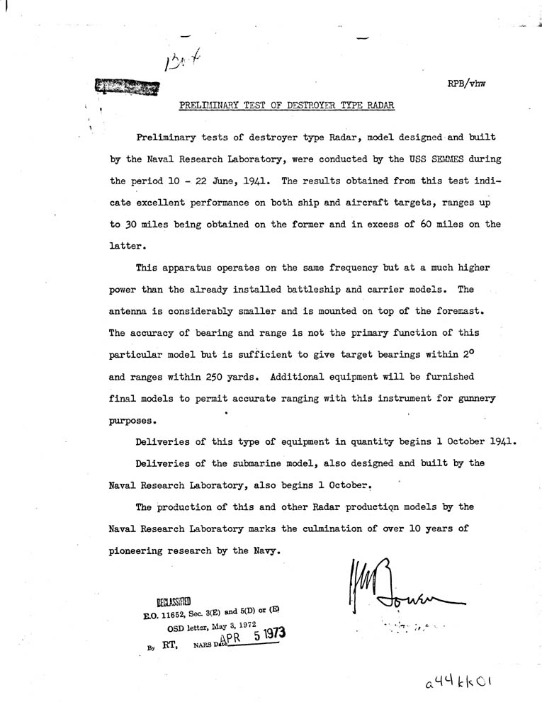 [a44kk01.jpg] - Preliminary Test of Destroyer Type Radar