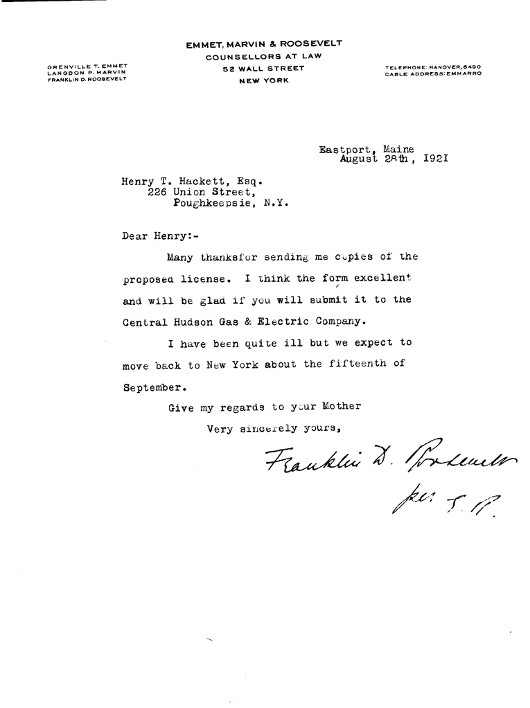 [a901ac01.jpg] - Letter to Hackett from F.D.R., August 28, 1921