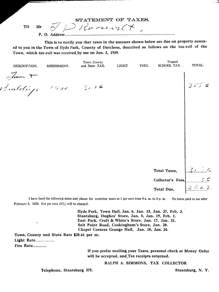 [a901av02.jpg] - Notice of taxes owed for the Franklin D. Roosevelt lands January 24, 1939
