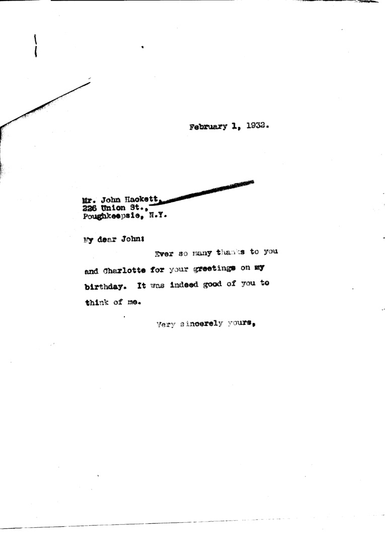 [a906be01.jpg] - Letter to John M. Hackett from FDR February 1, 1932