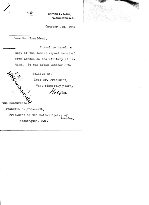 [a324g01.jpg] - Cover letter; Halifax-->FDR 10/9/41