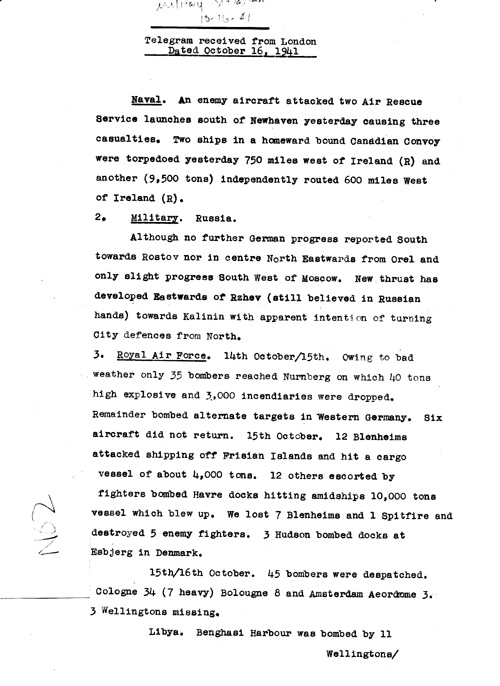 [a324n02.jpg] - Telegram from London on military situation 10/16/41