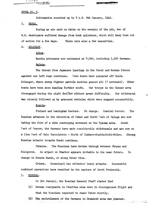 [a328e02.jpg] - Telegram from London on military situation 1/5/42