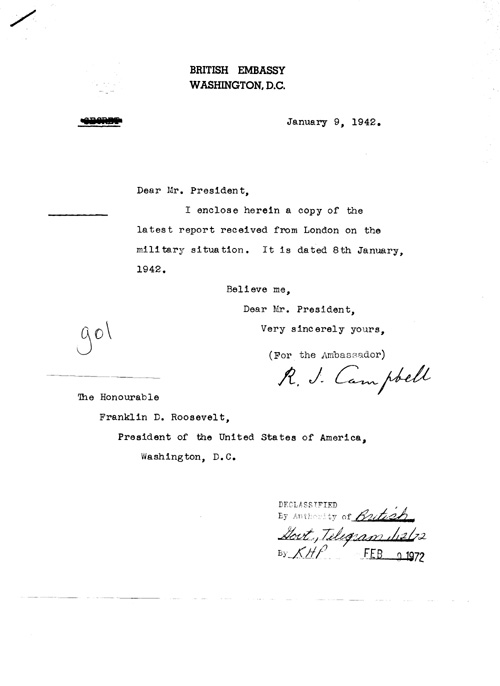 [a328g01.jpg] - Cover letter; Campbell-->FDR 1/9/42