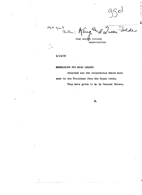 [a343gg01.jpg] - K --> Miss LeHand; White House memo. 6/13/39.