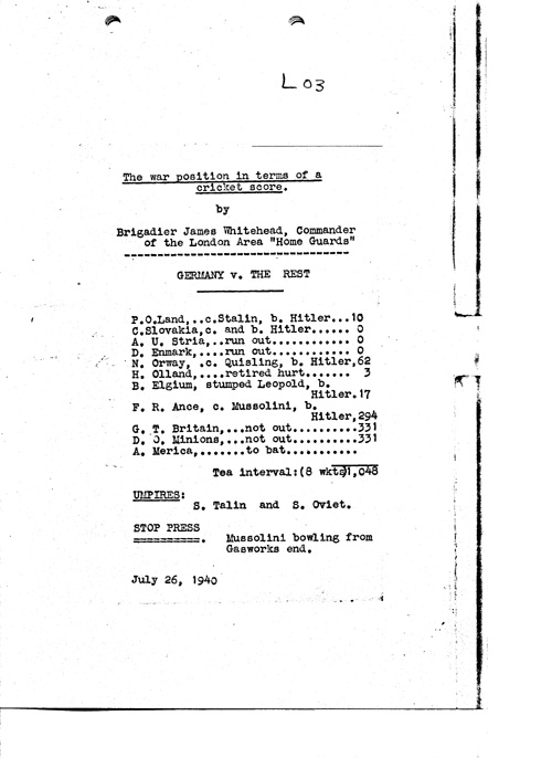 [a349l03.jpg] - The war position in terms of cricket score July 26th 1940