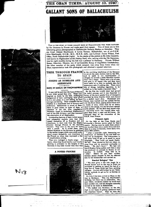 [a349n13.jpg] - Gallant Sons of Ballachulism August 10th 1940 (The OBAN TIMES) - Page 1