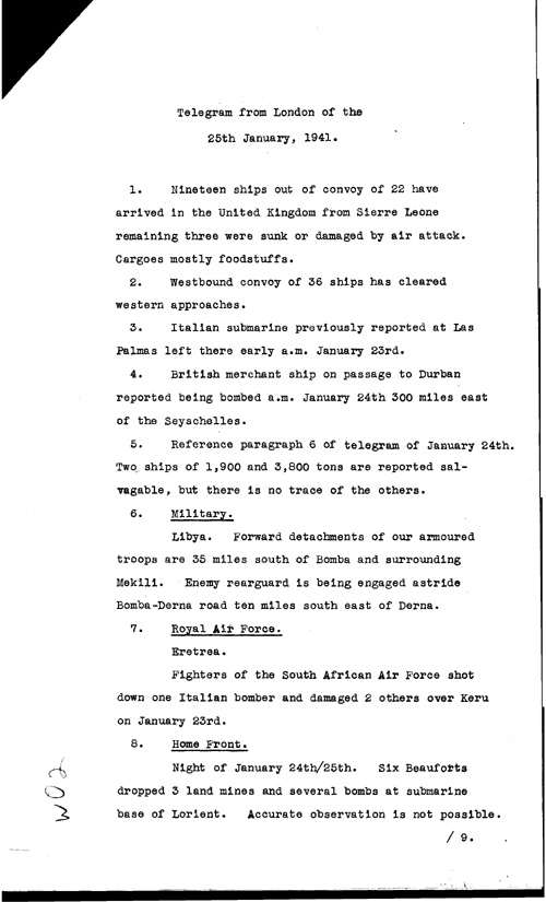 [a316w02.jpg] - Telegram from London regarding military situation 1/25/41