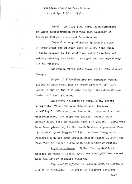 [a320a02.jpg] - Telegramfrom London on military situation 4/30/41