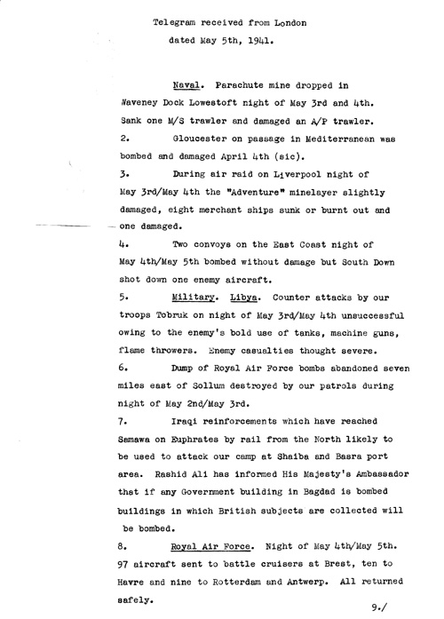 [a320e02.jpg] - Telegram from London on military situation 5/5/41
